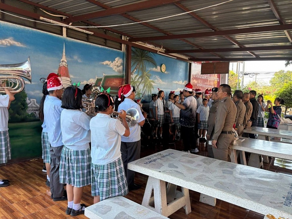 🎻ร่วมกับ คณะครู-อาจารย์ รับฟังการขับร้องอวยพร จากนักเรียนโรงเรียนสารสาสน์สมุทรสาร เนื่องในโอกาสวันขึ้นปีใหม่ บริเวณด้านข้าง สภ.พระสมุทรเจดีย์